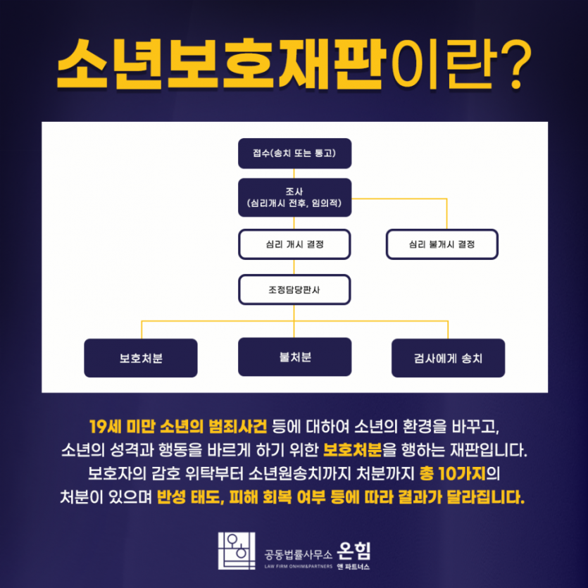 소년 사건의 경우 일반적인 민사, 형사사건과는 진행 절차가 다르기 때문에 대전촉법사건 소년법 경험이 많은 변호사의 조력을 받는 것을 권유 드립니다.