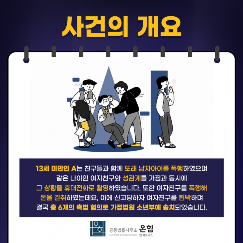 이에 신고당하자 여자친구를 협박하며 결국 총 6개의 촉법 혐의로 가정법원 소년부에 송치되었습니다.